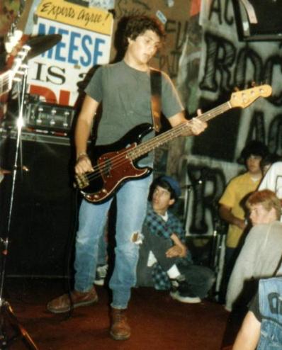 Rob Anderson first bass player for PR performing at Gilman Street circa 1987.