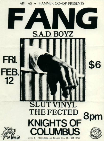 SLUT VINYL's first gig 1986 Vence and I collaborated on this production and so we used my Art as a Hammer name. |