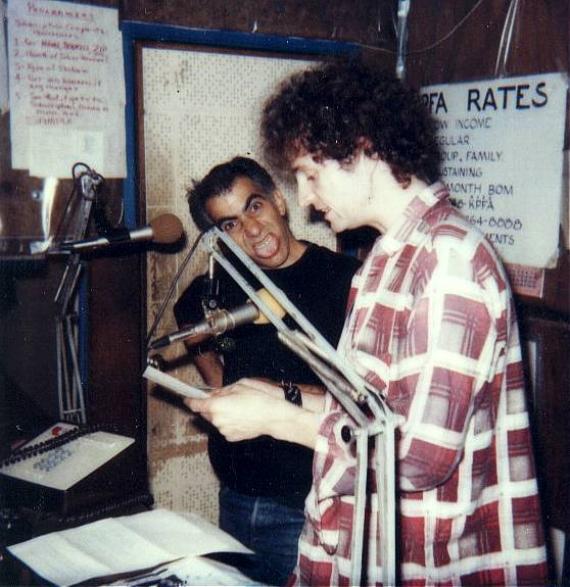 | Tim Yohannan and Jeff Bale at KPFA studio in Berkeley 1982 |