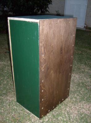 | When my former percussionist brought a cajon to rehearsal I was intrigued but put-off because of the way I thought it had to be played, bending way over to reach the striking surface, or Tapa. But, after I heard the playback I was hooked. It sounded so cool and folksy, but kind of like a drum kit, with snare and kick. Does it sound Country-ish or Latin-ish? I think that depends on the music that it is played with. I think it could even be used in a heavy metal band if miked properly and played by the right person. How about a cajon version of Black Sabbath's Paranoid? I thought, if you had a crash you indeed would have an acoustic percussive instrument that could imitate a drum kit. But, it would be hard to hit a crash cymbal bending over like that. Then I saw many different configurations of the cajon, in many different sizes and shapes. And many you don't have to play bending over. I have this problem with my back and so does my percussionist, so it was nice to see that you can definitely play it standing or sitting up. And, as it turns out, do it in an interesting way that records easily and well. The ones on youtube that were miked in the hole sounded great. You could really get a loud, thumping beat. Pumping it through a big PA, you could rival the volume of a drum kit. When I looked online at how a cajon is made, I was amazed at the wealth of information out there. Many different plans, videos and diagrams on how they are made, what they sound like and how the cajon originated is available online. Just Google 'how to make a cajon'. I printed out several plans from the net. It seemed like each plan left out some key details and so, puttting them all together gave me a more complete vision of how to make it. I have to be able to visualize the finished product and most of it's detail in my mind before I can feel confident enough to make it. |