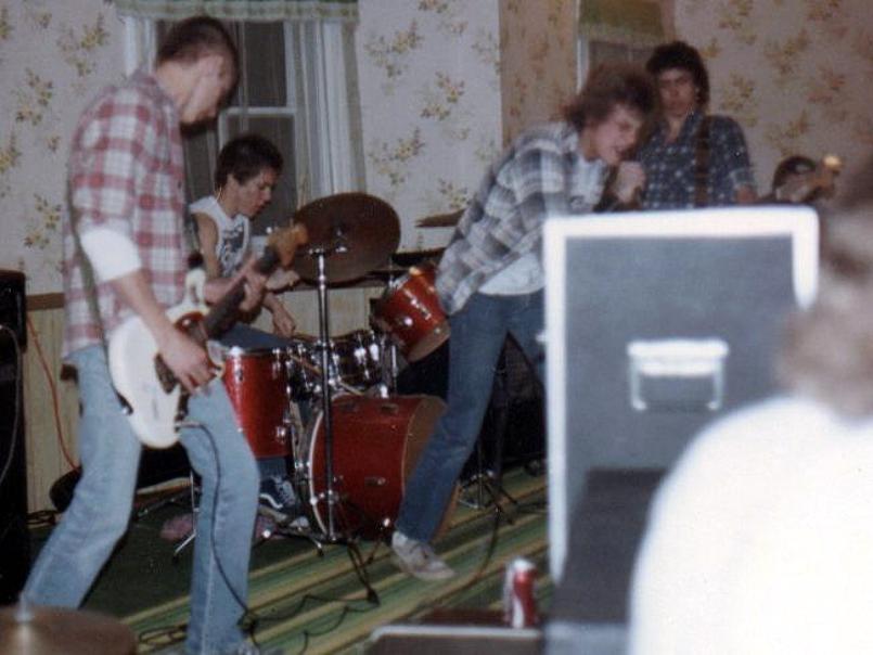 Cambodian Kids Fulton House 1983 L to R: Jeff Higgins-Guitar, Danny Peckham-Vocals, Shawn Baird-Drums, Jeff Grenstead-Bass
