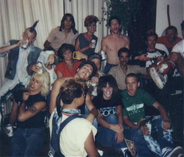 | partiers circa 1984: LtoR,  Loren, Steve, Tiffany, Tony,  Shawn, Rudy Rude, Bob, Kelly, Monsour and .....? somebody help me here with the other names... punksnax at hot mail dot com  |