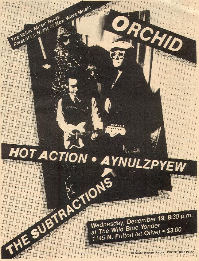 Practicing in an auto body shop THE SUBTRACTIONS formed in 1979. A few months later I was added on as second guitarist and the band became a 5 piece. I played the first few gigs. One, a Fresno State frat party at a rented hall put on by scenester Pat Farley, which I believe was one of thee first, actual hardcore punk gigs in Fresno that featured a local punk band and another at the Wild Blue Yonder with a band called AYNUL SPEW. But then my drinking and bad attitude at practice got me kicked out of the band. They went on as a 4 piece just fine without me after that. But, that was the first real 'modern' punk band I played in and I learned a lot from those guys.